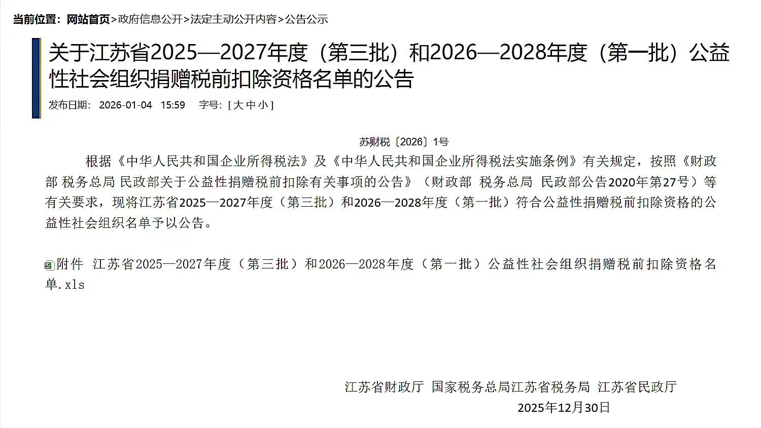 河海大学教育发展基金会获得江苏省2026-2028年度公益性社会组织捐赠税前扣除资格